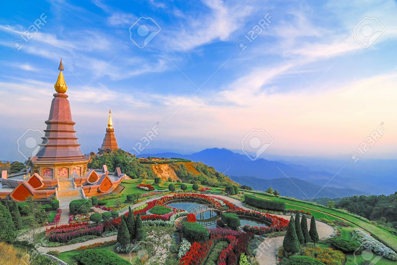 Get landscape of two pagoda on inthanon mountain, chiang mai, thailand.
