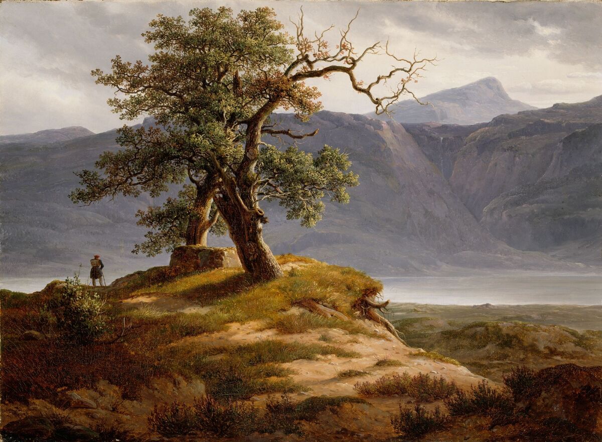 20+ Wilhelm Bendz's Berglandschap Mountain Landscape 1831 PNG. Mountains · trees · clouds · umbrella · grass · scenery · daytime · stream. Bendz is himself seen in the picture, second from the right.