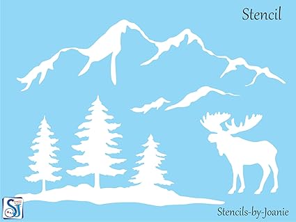 23+ Mountain Pine Landscape Stencil Images. Pine trees, mountains with moon and cloud, deer, moose, tree branches, regular tree. Pine trees silhouette vector background.