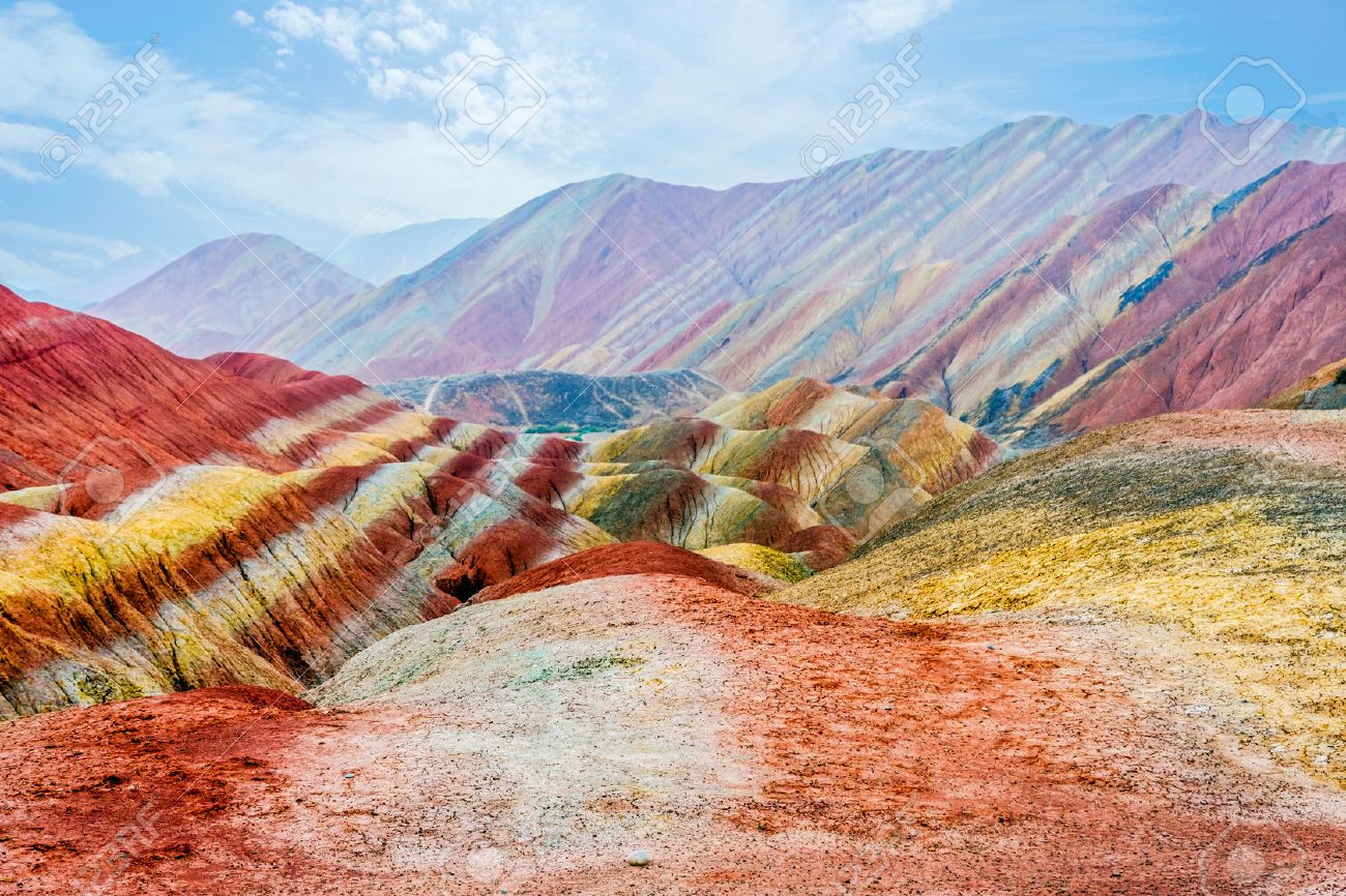 30+ China's Landscapes Colorful Mountains Images. Colorful layers of danxia landscape. It refers to various landscapes that consist of red sandstone characterized by steep colourful then the action of the tectonic plates created the mountain landform, which in its turn suffered the wind, water and erosion.