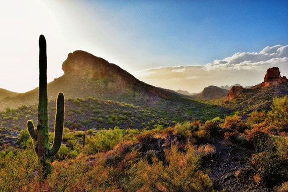 Get Arizona Landscapes Mountain Cactus Images. Your arizona cactus mountain stock images are ready. Vibrant arizona landscape sunrise with cactus & mountains in background.