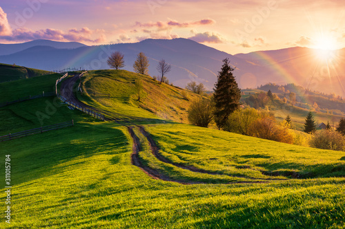 Get Rolling Mountains Landscape At Sunset Background. Island, iceberg, tree on rock, desert, forest river, canyon, mountains, ancient city, mountain bridge, plains Rolling mountains is created by artist daniel romanovsky from country canada.