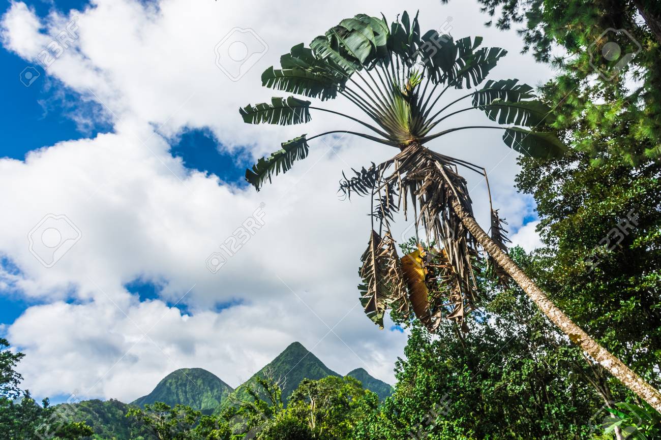 View Martinique Mountain Landscape Background. Caribbean martinique island travel background beautiful beauty blue environment fog forest green hill landscape martinique island mountain natural nature outdoor park peeled mountain pelée rock. Gauguin's glowing colours convey the exotic character of the martinique landscape.